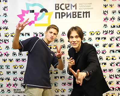 Он немного стесняется "добавлять руки" во время выступления, сосредоточен на речи. Но у него всё впереди, уверена, со временем всё получится!